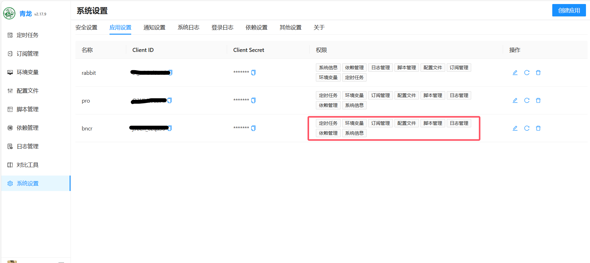 重启完成后打开青龙面板-系统设置-应用设置 为无界创建一个应用。